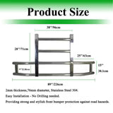 • Aftermarket Large Polished 304 Stainless Steel Deer Guard. The thickness of the tube is 0.079 inches and the diameter is 2.99 inches. The Deer Bumper Guard can effectively prevent various kinds of collision and greatly reduce the damage and maintenance cost caused by collision to vehicles.